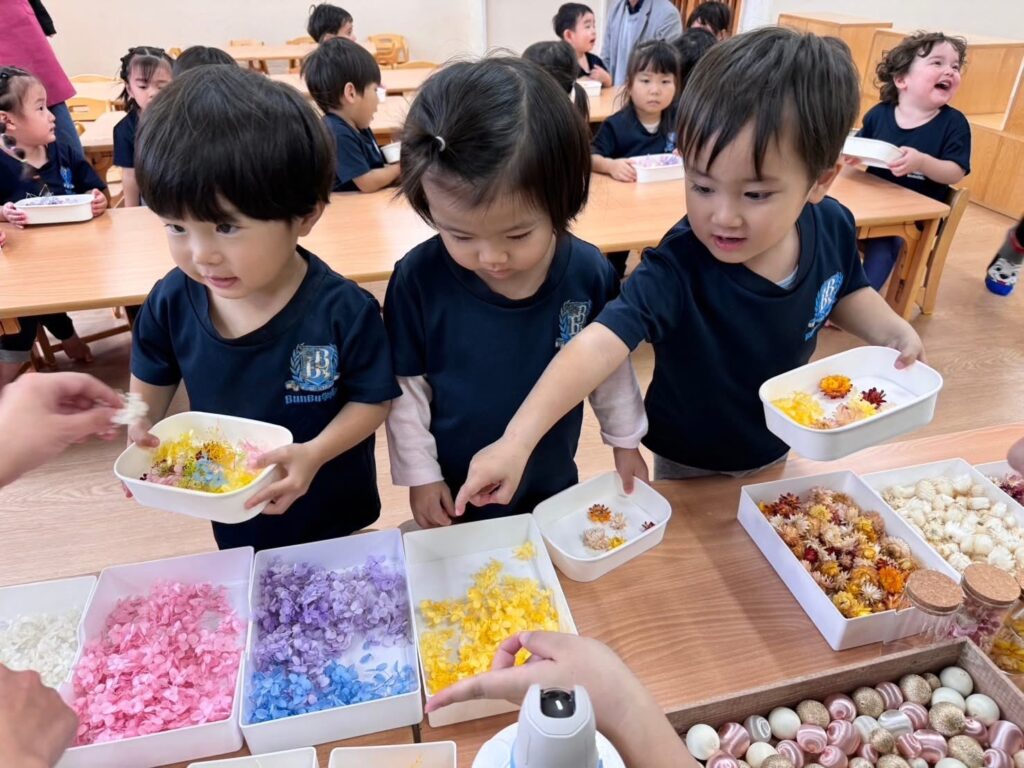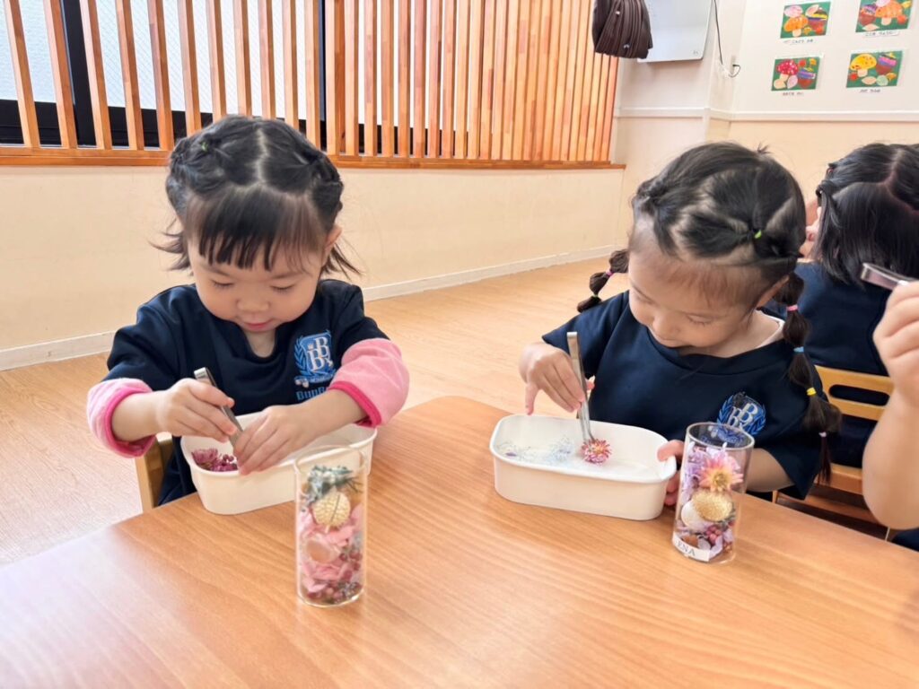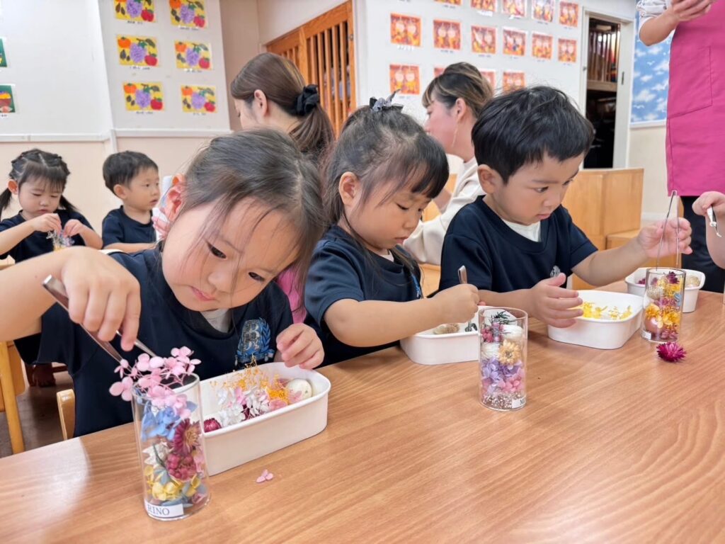 お花はピンセットと使って優しくつまみ、丁寧に、真剣に、講師の先生が驚く程集中して、製作を楽しんでいた子どもたち✨