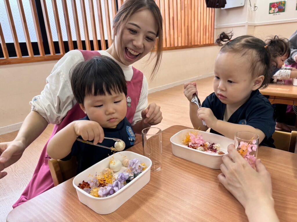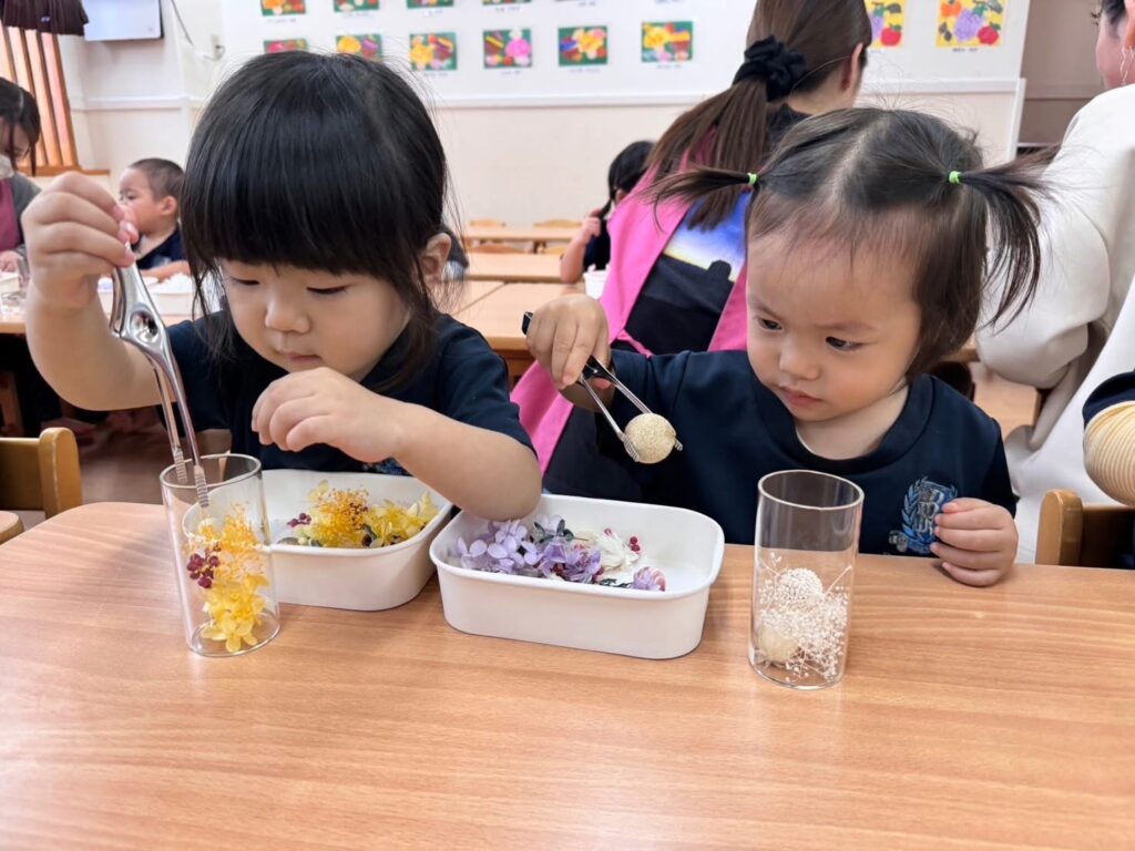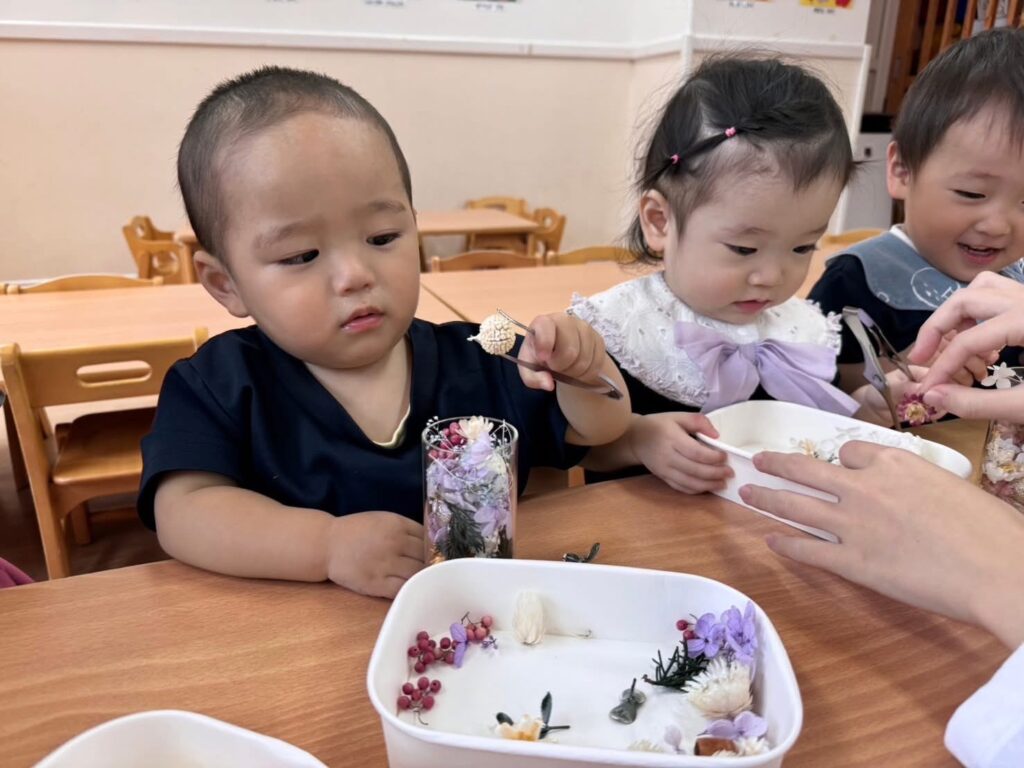 今後もお花のフラッシュカードや戸外遊びを通して様々なお花の名前を知り、お花から四季を感じられる様になると良いです!